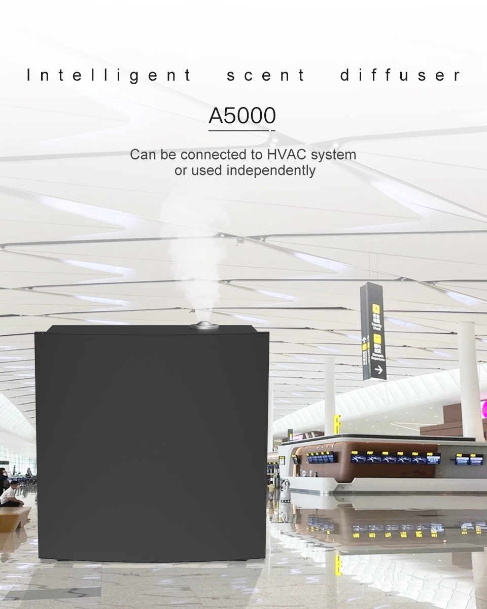DanQ's new product A5000 is very suitable for large-area places. The device can be connected to the HVAC system, covering a space of 5,000m³, and has a large-capacity 1000ml essential oil bottle, which makes it unnecessary to add essential oil frequently. In addition, the machine can also set the working time and concentration anytime and anywhere through the WiFi app, which greatly improves the efficiency.