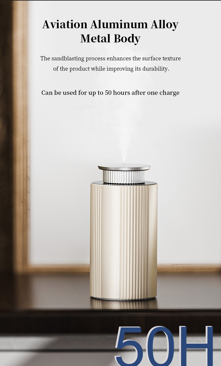 Mini portable aluminum alloy aroma diffuser.Aluminum alloy shell, exquisite look, good partner for travel.Suitable for small place like home, car, office.